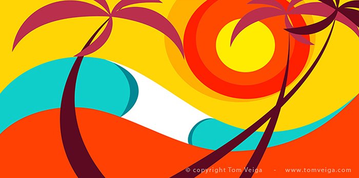 Tom describes his style on his website as “a very Brazilian style, bringing joy through colours, Serie Waves seeks to interpret the most of the unique characteristics of each wave with minimum possible strokes , always with a lot of movement and life.”