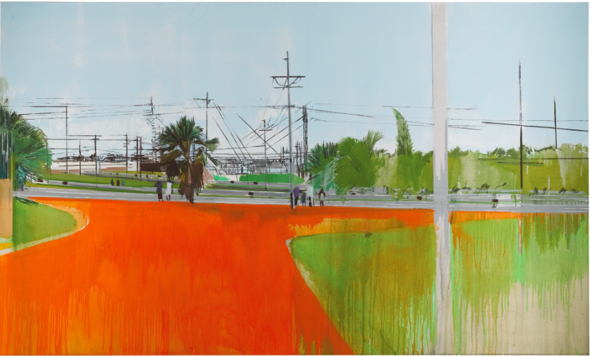 Hurvin Anderson (b. 1965) is a Birmingham-born painter, whose work straddles figuration and abstraction. The artist studied at the Royal College of Art. Much of Anderson’s work evokes sensations of being caught between one place and another, drawn from the artist’s personal experience of living in the UK within the Afro-Carribean community.